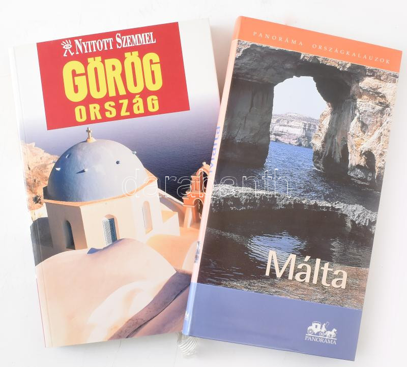 2 db útikönyv: Moldoványi Ákos: Málta. Bp., 2004, Panoráma. Kiadói papírkötés. + Görögország. Nyitott Szemmel sorozat. Bp., 2002, Kossuth. Kiadói papírkötés.