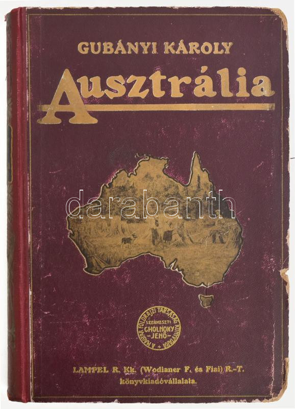 Gubányi Károly (1867-1935): Gubányi Károly: Ausztrália. Magyar Földrajzi Társaság Könyvtára. Bp., [1915], Lampel R. (Wodianer F. és Fiai) Rt., 1 t.+ 4+253+3 p.+15 (fekete-fehér fotók) t. Szövegközti fekete-fehér fotókkal és térképekkel. Kiadói aranyozott, illusztrált félvászon-kötés, kopott borítóval, kissé sérült gerinccel, kijáró, sérült elülső szennylappal, egy kijáró táblával.