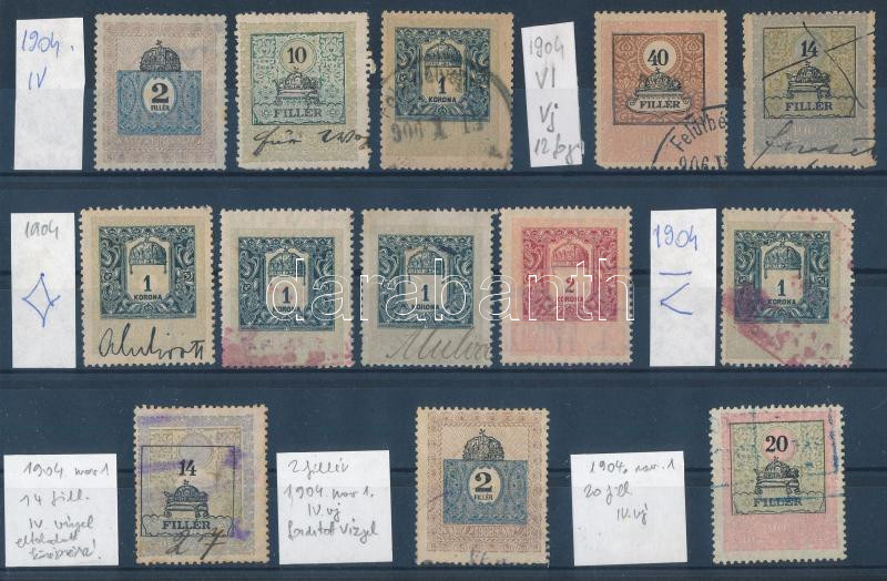 1904 13 db számvízjeles és csillagvízjeles okmánybélyeg