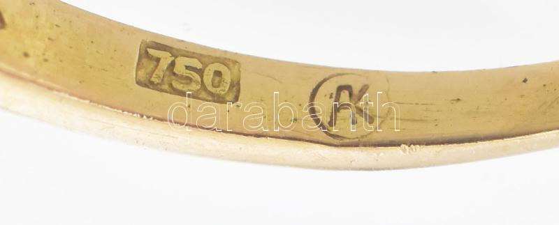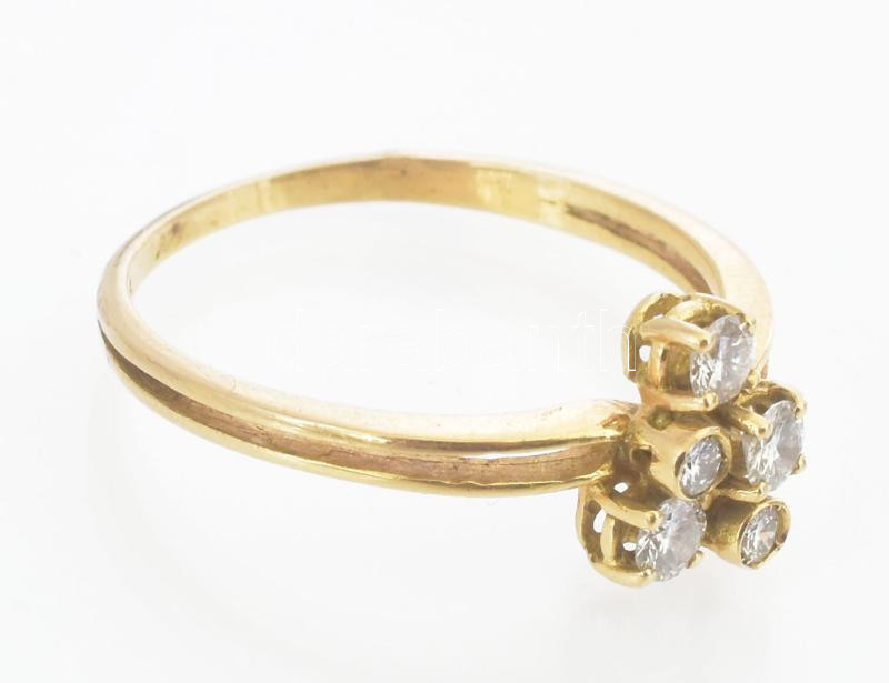 Arany (Au) 18K gyűrű brillekkel, 2×0,02 és 3×0,05 ct brillekkel, jelze...