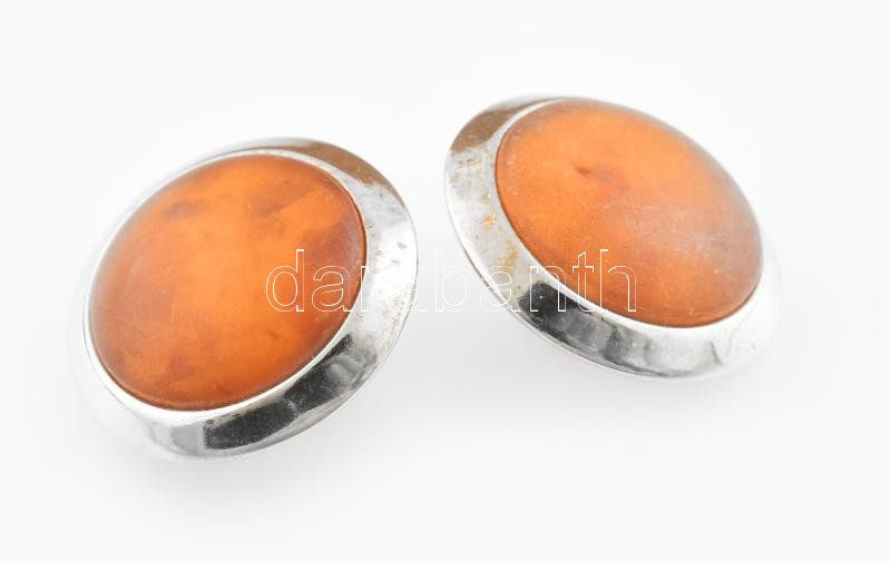 Ezüst(Ag) borostyános fülklipsz, jelzett, d: 2,5 cm, bruttó: 13,3 g