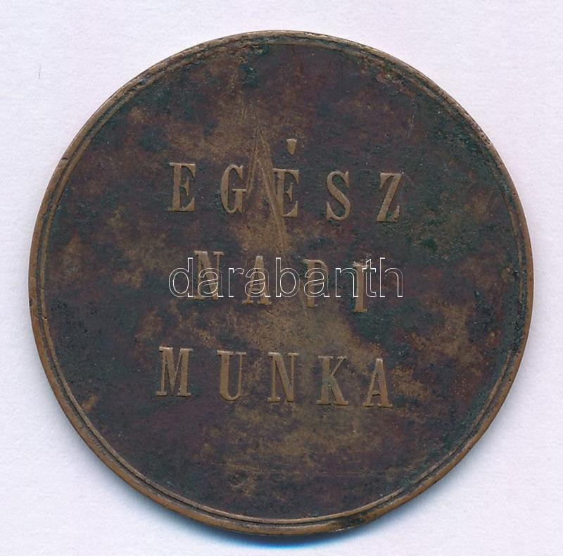 ~1900. "Egész napi munka" Cu-Ni Dohánygyári bárca (38mm) T:VF patina, ph.