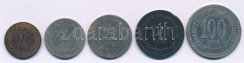 Description: Ausztria / Mühling tiszti hadifogolytábor 1915. 1h Fe + 2h Fe + 10h Fe + 20h Fe + 100h Fe Fe T:AU-F