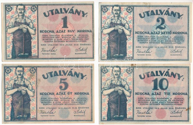 Budapest 1919. 1K + 2K + 5K + 10K "Schlick Nicholson Gép-Waggon- és Hajógyár" utalvány (4xklf) T:AU-F folt