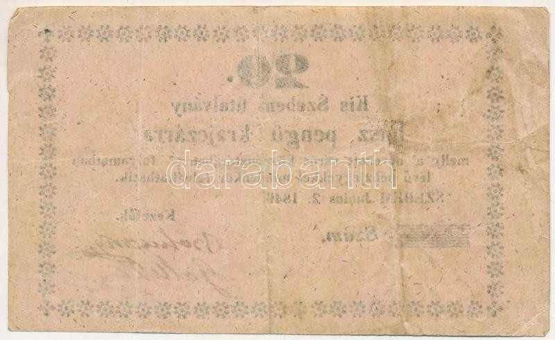 Kis-Szeben 1849. június 2. 20kr utalvány "SZEBEM" szöveghiba T:F