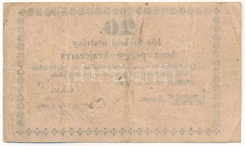 https://www.darabanth.com/en/469-Online-auction/469.0/Numismatics/Emergency-Coins-and-Notes~2000007/Kis-Szeben-1849-junius-2-20kr-utalvany-keretvaltozat-TF-Adamo-KSZ-131~II3172082