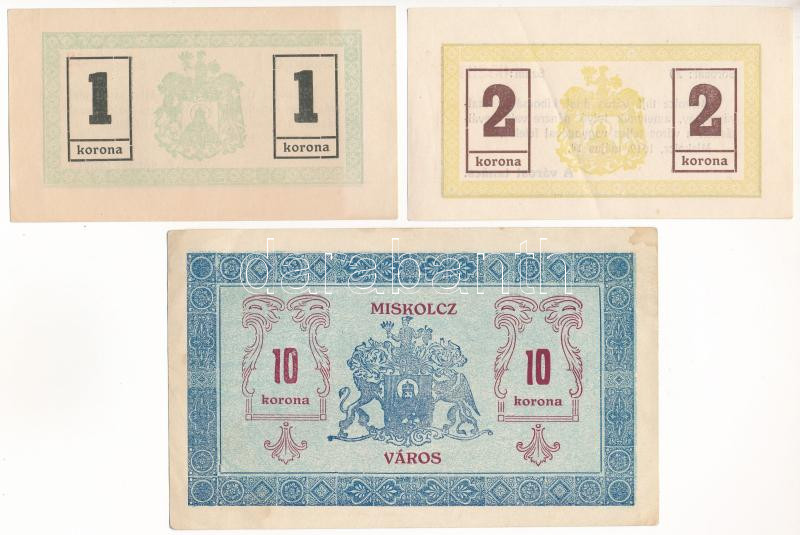 Hungary / Miskolc 1919. 1 Korona + 2 Korona + 10 Korona C:AU-XF