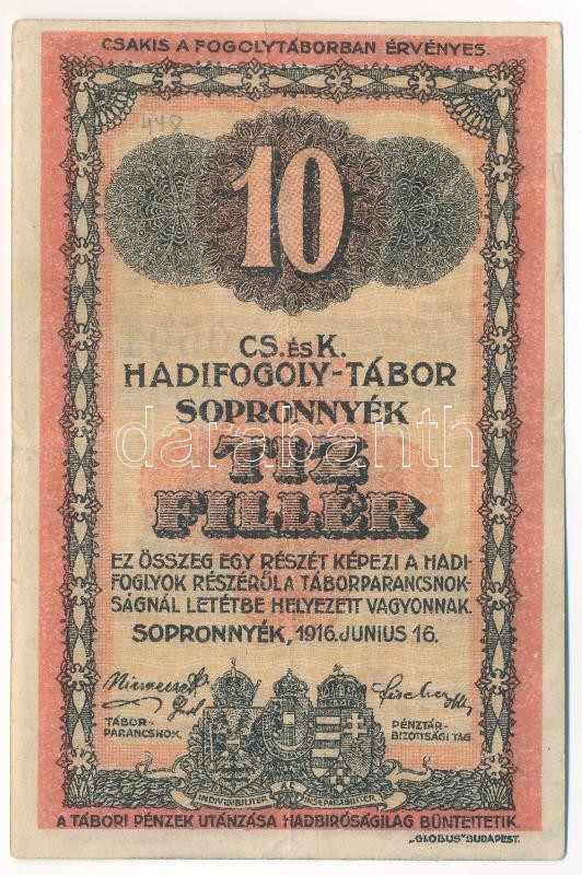 https://www.darabanth.com/en/469-Online-auction/469.0/Numismatics/Emergency-Coins-and-Notes~2000007/Sopronnyek-hadifogolytabor-1916-junius-16-10f-arab-sorozat-es-sorszam-TF-Adamo-HHP-12~II3170527