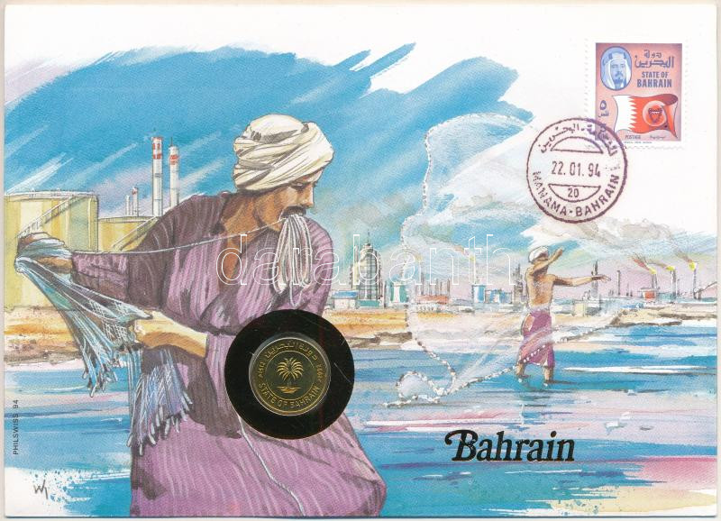 Bahrein 1992. 5f sárgaréz felbélyegzett borítékban, bélyegzéssel, néme... https://www.darabanth.com/en/469-Online-auction/469.0/Numismatics/Envelopes-with-Coins-and-Banknotes~2000005/Bahrein-1992-5f-sargarez-felbelyegzett-boritekban-belyegzessel-nemet-nyelvu-tajekoztat~II3167247