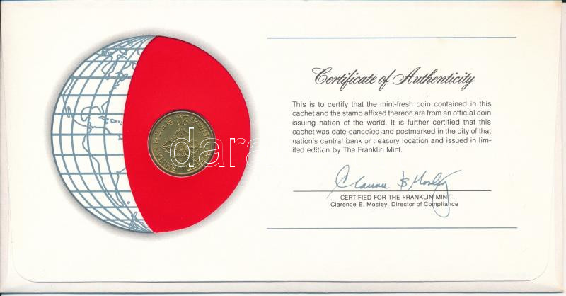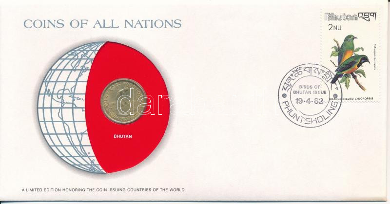 Description: Bhután 1974. 20c "Nemzetek pénzérméi" felbélyegzett borítékban, bélyegzéssel T:AU