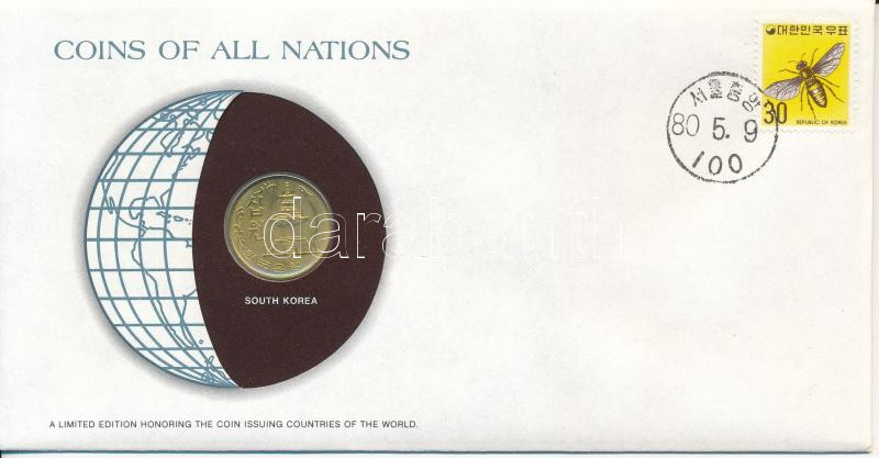 Description: Dél-Korea 1979. 10W "Nemzetek pénzérméi" felbélyegzett borítékban, bélyegzéssel T:UNC,AU