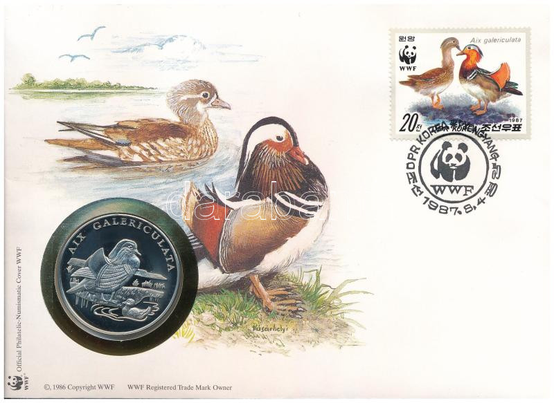 Észak-Korea DN (1991) "A Világ Vadvédelmi Alap (WWF) 30. évfordulója - Aix Galericulata (Mandarinréce)" kétoldalas fém emlékérem érmés borítékban, bélyeggel és bélyegzéssel, német nyelvű ismertetővel T:PP