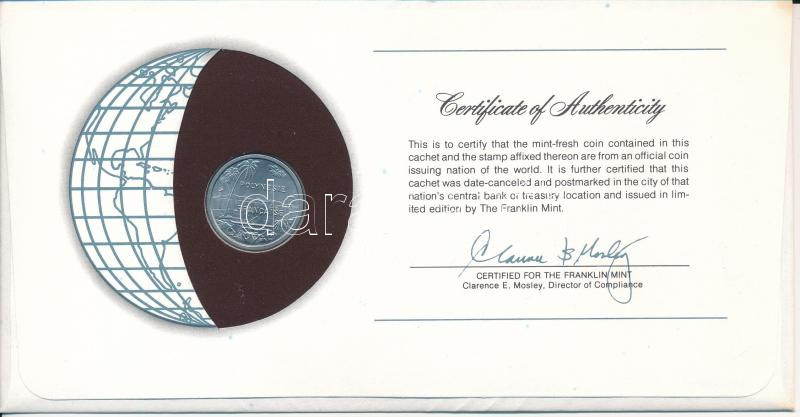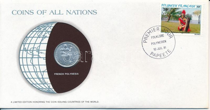 Description: Francia-Polinézia 1979. 1Fr "Nemzetek pénzérméi" felbélyegzett borítékban, bélyegzéssel T:AU
