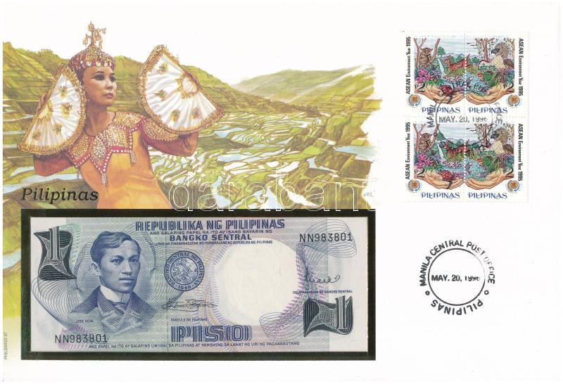 Philippines 1969. 1 Piso in envelope with stamp and cancellation C:UNC
