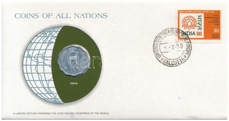 Description: India 1979. 10p Al "Nemzetek pénzérméi" felbélyegzett borítékban, bélyegzéssel T:UNC