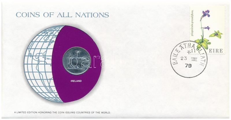 Ireland 1976. 5 Pence Cu-Ni "Coins of all Nations" in envelope with stamp and cancellation C:UNC