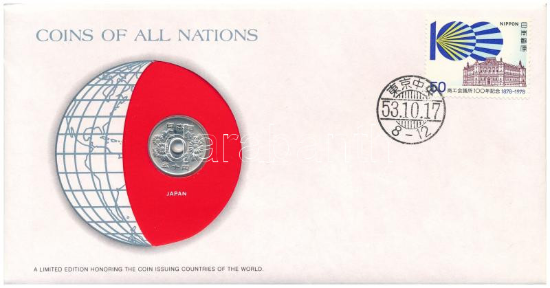 Japán 1978. 50Y Cu-Ni "Nemzetek pénzérméi" felbélyegzett bor... https://www.darabanth.com/en/469-Online-auction/469.0/Numismatics/Envelopes-with-Coins-and-Banknotes~2000005/Japan-1978-50Y-Cu-Ni-Nemzetek-penzermei-felbelyegzett-boritekban-belyegzessel-TUNC-Ja~II3157751