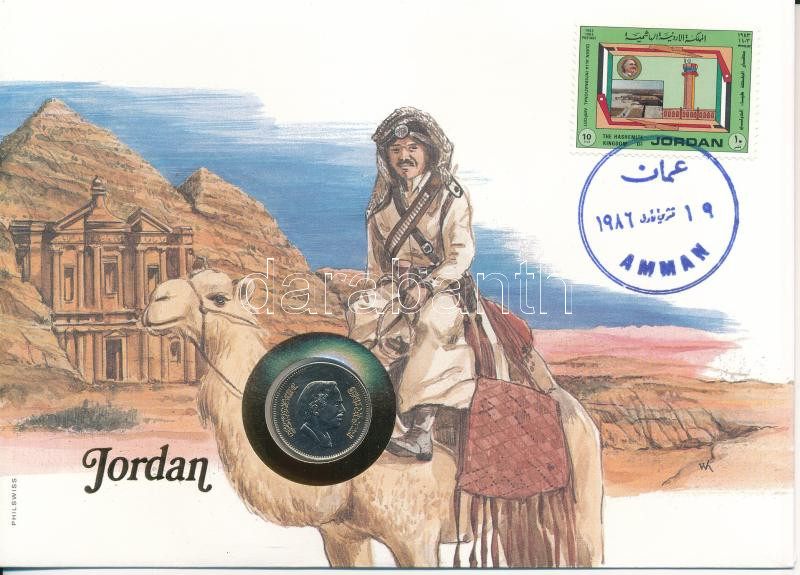 Jordánia 1984. 25f Cu-Ni felbélyegzett borítékban, bélyegzéssel T:UNC ... https://www.darabanth.com/en/469-Online-auction/469.0/Numismatics/Envelopes-with-Coins-and-Banknotes~2000005/Jordania-1984-25f-Cu-Ni-felbelyegzett-boritekban-belyegzessel-TUNC-Jordan-1984-25-Fils-Cu-~II3143452