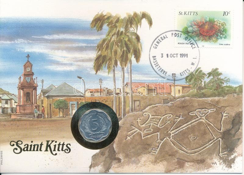 Kelet-Karibi Államok / St. Kitts 1986. 5c Al "II. Erzsébet" ... https://www.darabanth.com/en/469-Online-auction/469.0/Numismatics/Envelopes-with-Coins-and-Banknotes~2000005/Kelet-Karibi-Allamok-St-Kitts-1986-5c-Al-II-Erzsebet-felbelyegzett-boritekban-belyegzC3~II3171394