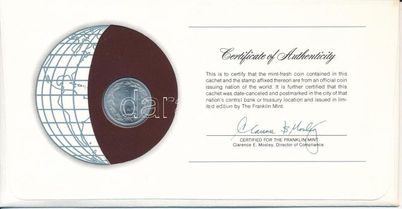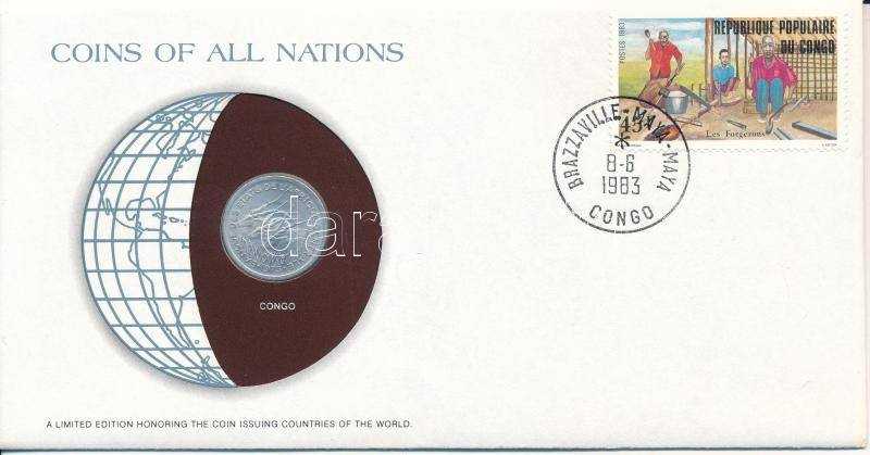 Description: Kongó 1976. 1Fr "Nemzetek pénzérméi" felbélyegzett borítékban, bélyegzéssel T:AU