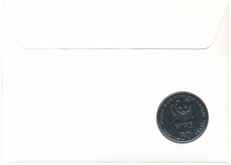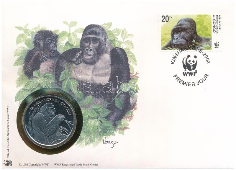 Kongói Demokratikus Köztársaság DN (1991) "A Világ Vadvédelmi Alap (WWF) 30. évfordulója - Gorilla Beringei Graueri (Keleti síkvidéki gorilla)" kétoldalas Cu-Ni emlékérem érmés borítékban, bélyeggel és bélyegzéssel, német nyelvű ismertetővel T:PP Democratic Republic of the Congo ND (1991) "30th Anniversary of the World Wildlife Fund - Gorilla Beringei Graueri" two-sided Cu-Ni commemorative medallion in envelope with stamp and cancellation, with German description C:PP