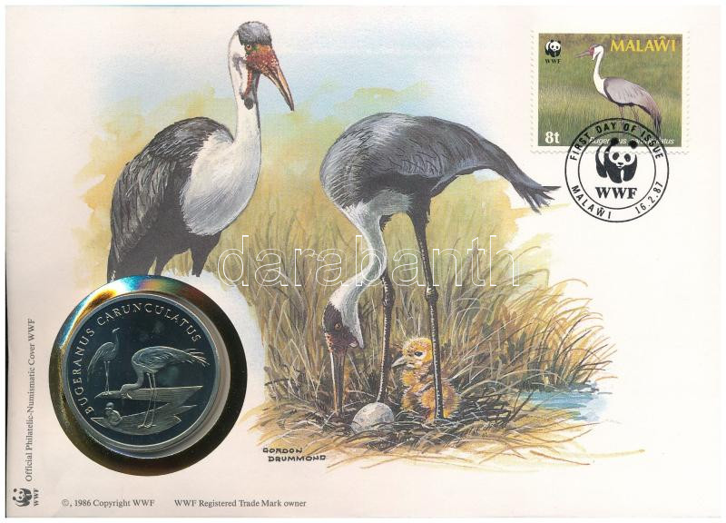 Malawi DN (1991) "A Világ Vadvédelmi Alap (WWF) 30. évfordulója - Bugeranus Carunculatus (Daru)" kétoldalas fém emlékérem érmés borítékban, bélyeggel és bélyegzéssel, német nyelvű ismertetővel T:PP