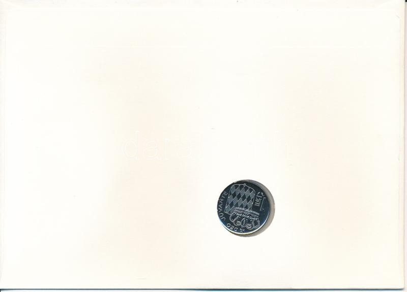 Monaco 1986. 1 Franc Ni in envelope with stamp, cancellation and a prospectus in german C:UNC