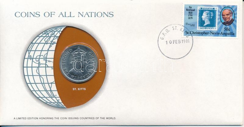 Saint Kitts 1965. 50c "Nemzetek pénzérméi" felbélyegzett bor... https://www.darabanth.com/en/469-Online-auction/469.0/Numismatics/Envelopes-with-Coins-and-Banknotes~2000005/Saint-Kitts-1965-50c-Nemzetek-penzermei-felbelyegzett-boritekban-belyegzessel-TUNC-AU-~II3156727