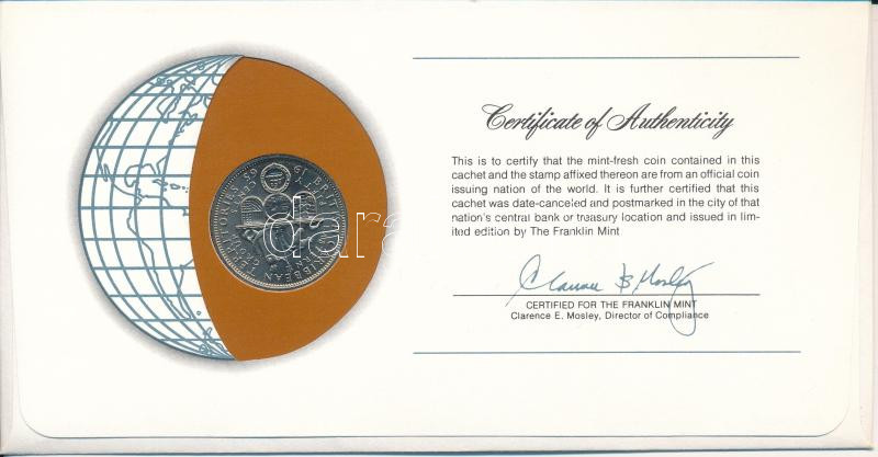 Description: Saint Kitts 1965. 50c "Nemzetek pénzérméi" felbélyegzett borítékban, bélyegzéssel T:UNC,AU