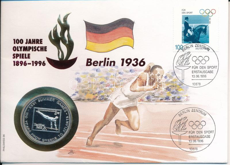 Uganda 1996. 1000 Shillings Cu-Ni "Atlanta 1996 Olympics - Berlin" in envelope with stamp and cancellation C:PP