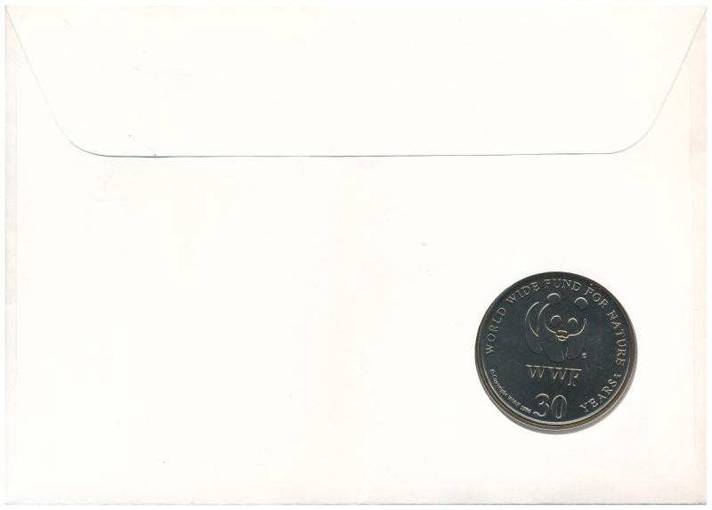 New Zealand ND (1991) "30th Anniversary of the World Wildlife Fund - Sphenodon Punctatus" two-sided metal commemorative medallion in envelope with stamp and cancellation, with German description C:PP