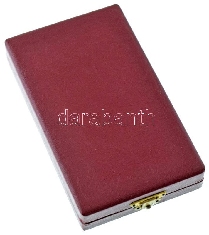 Description: 1954. "A Munka Érdemrend" arany fokozata, aranyozott, zománcozott bronz kitüntetés mellszalagon, szalagsávval eredeti tokban T:AU patina