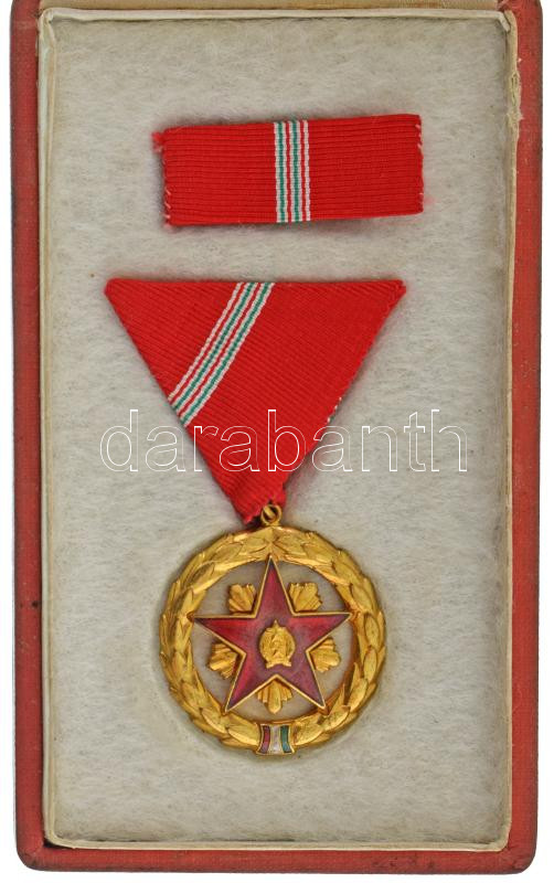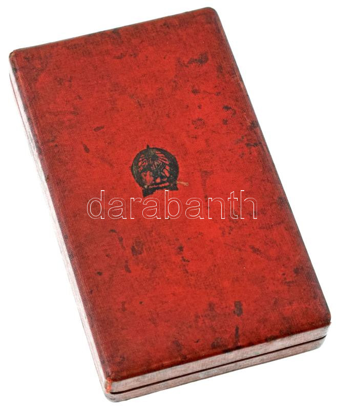 1954. "Szocialista Munkáért Érdemérem" zománcozott, aranyozott bronz kitüntetés mellszalagon, eredeti Rákosi-címeres adományozói tokban T:AU NMK 603.
