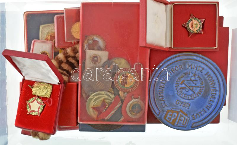 Közepes doboznyi szocialista emlékérem-, plakett- és jelvénytétel T:vegyes
