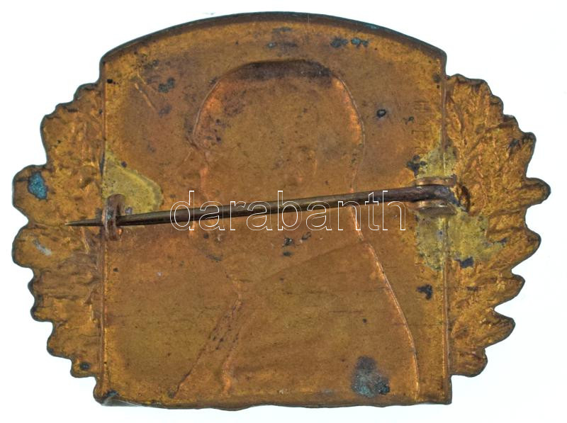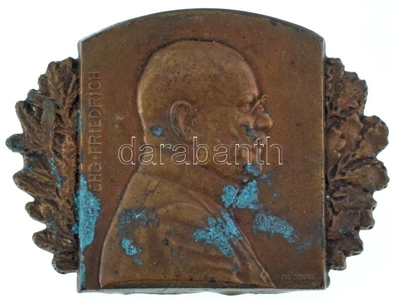 Osztrák-Magyar Monarchia 1915. "FM. EHG. Friedrich" Habsburg-Tescheni Frigyes főherceget ábrázoló aranyozott bronz jelvény. Szign.: Rudolf Ferdinand Marschall (32x42mm) T:AU lekopott aranyozás, patina