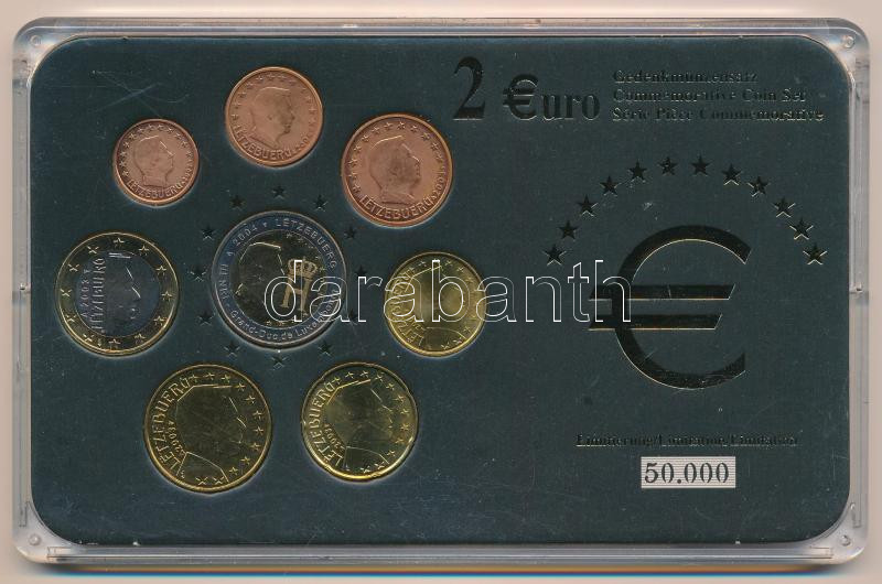 Luxembourg 2003-2004. 1 Cent - 2 Euro (8xdiff) coin set in plastic case, within 2004. 2 Euro "Monogramme" circulating commemorative coin C:UNC,AU