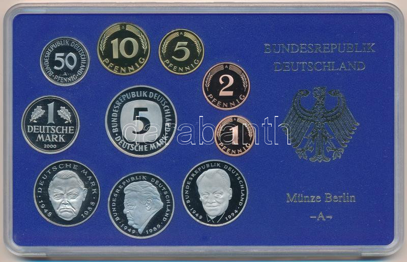 NSZK 2000A 1pf-5M (10xklf) forgalmi sor műanyag dísztokban, külső kart... https://www.darabanth.com/en/469-Online-auction/469.0/Numismatics/Foreign-Coin-sets~2000017/NSZK-2000A-1pf-5M-10xklf-forgalmi-sor-muanyag-disztokban-kulso-karton-tokkal-TPP--FRG-2000A~II3175822