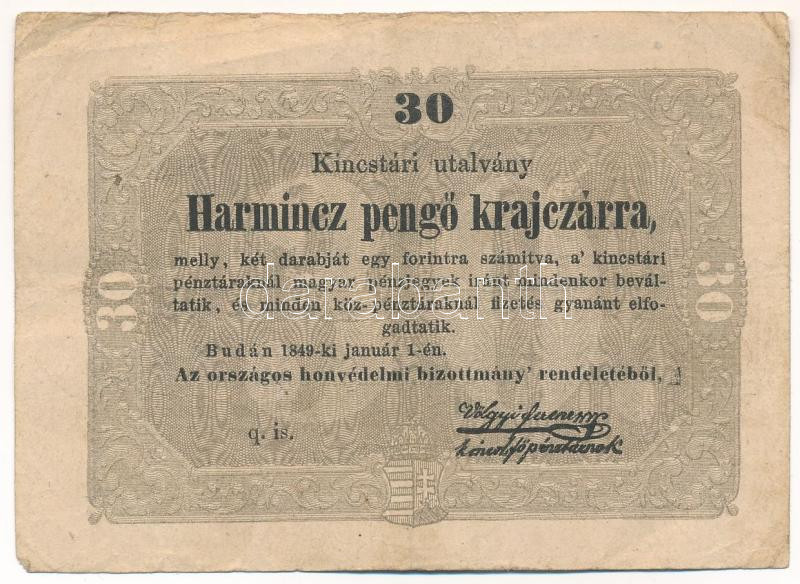 1849. 30kr "Kossuth bankó" T:F,VG Adamo G103
