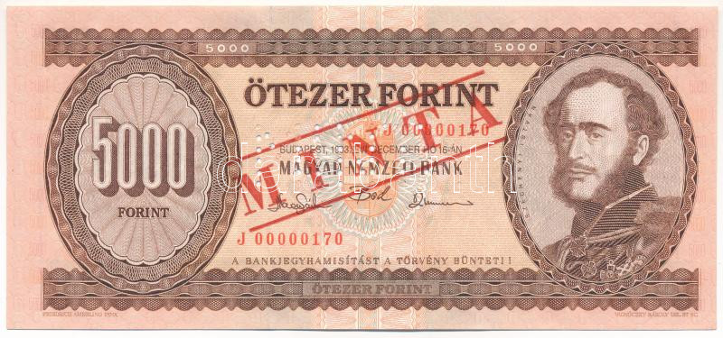 1993. 5000Ft "J 00000170" sorszámmal, piros "MINTA"...