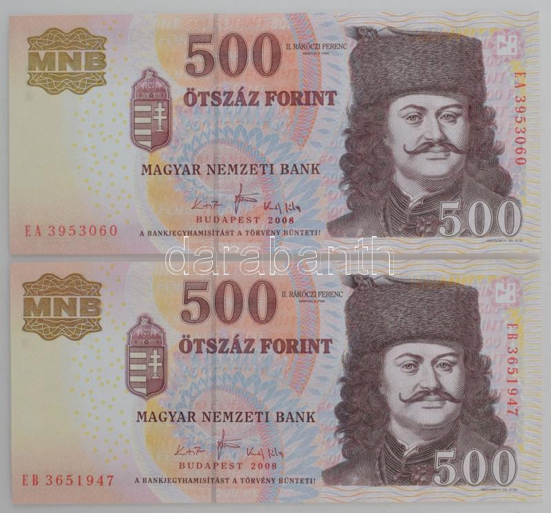 https://www.darabanth.com/en/469-Online-auction/469.0/Numismatics/Hungarian-Banknotes~2000008/2008-500Ft-2db-EA-EB-TUNC-AU~II3175432
