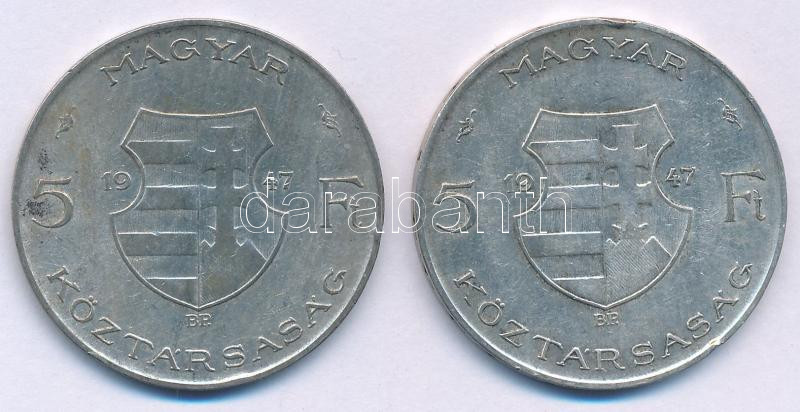 1947. 5Ft Ag "Kossuth" (2x) T:VF,F patina Adamo F8.1