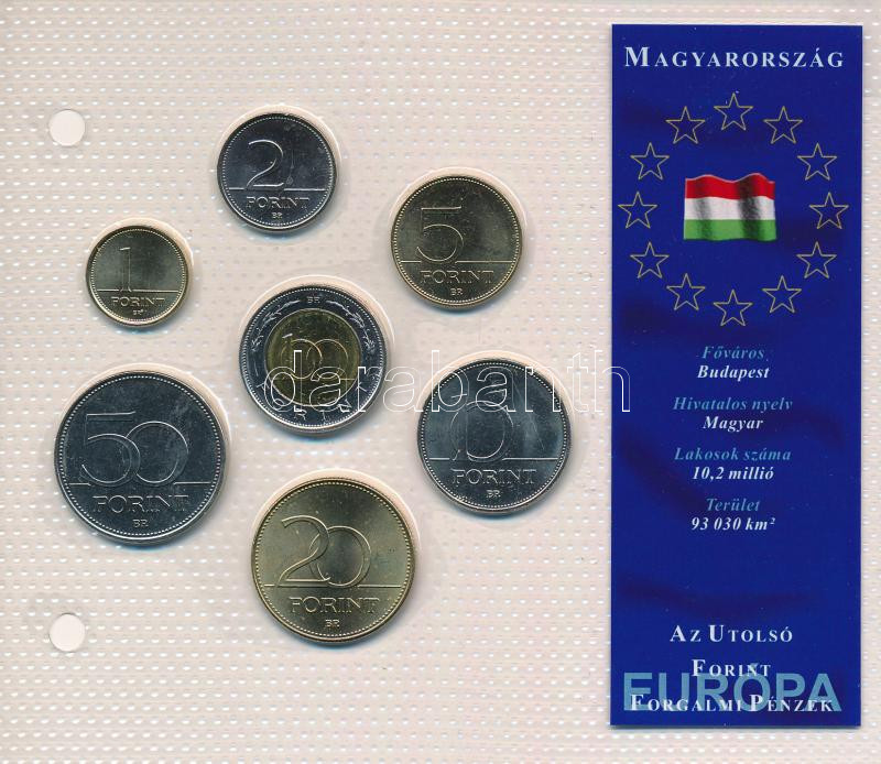 https://www.darabanth.com/en/469-Online-auction/469.0/Numismatics/Hungarian-coins-and-coins-with-Hungarian-mint-marks~2000009/1995-2003-1Ft-100Ft-7xklf-Europa-utolso-penzei-vakuumcsomagolt-forgalmi-osszeallitas-T~II3130595