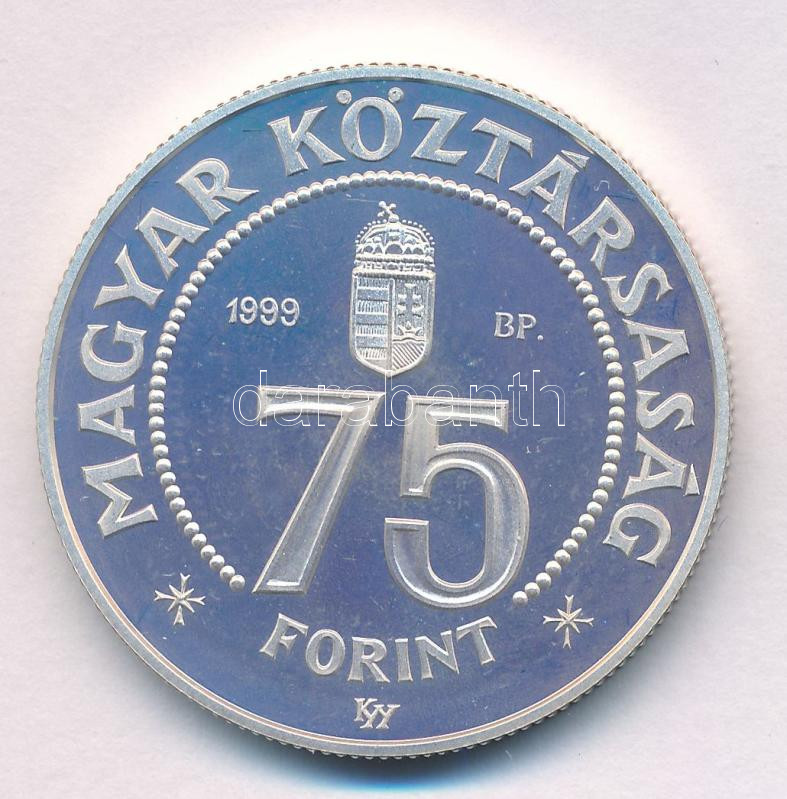 https://www.darabanth.com/en/469-Online-auction/469.0/Numismatics/Hungarian-coins-and-coins-with-Hungarian-mint-marks~2000009/1999-75Ft-Ag-75-eves-a-Magyar-Nemzeti-Bank-TUNC-AU-eredetileg-PP--Adamo-EM158~II3169149