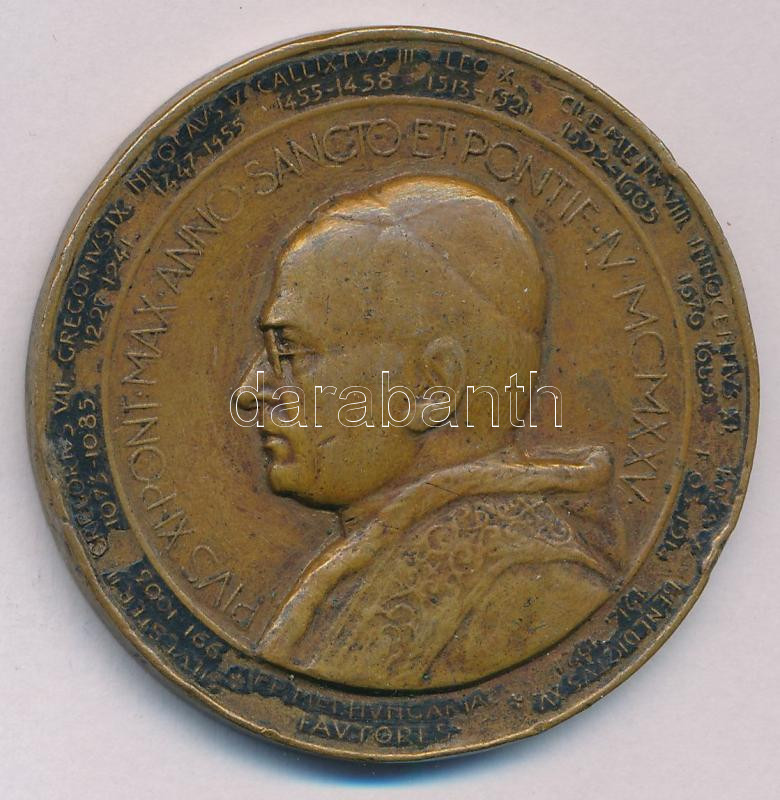 Berán Lajos (1883-1943) 1925. "XI. Pius" bronz emlékérem (35,59g/45mm) T:F ly.