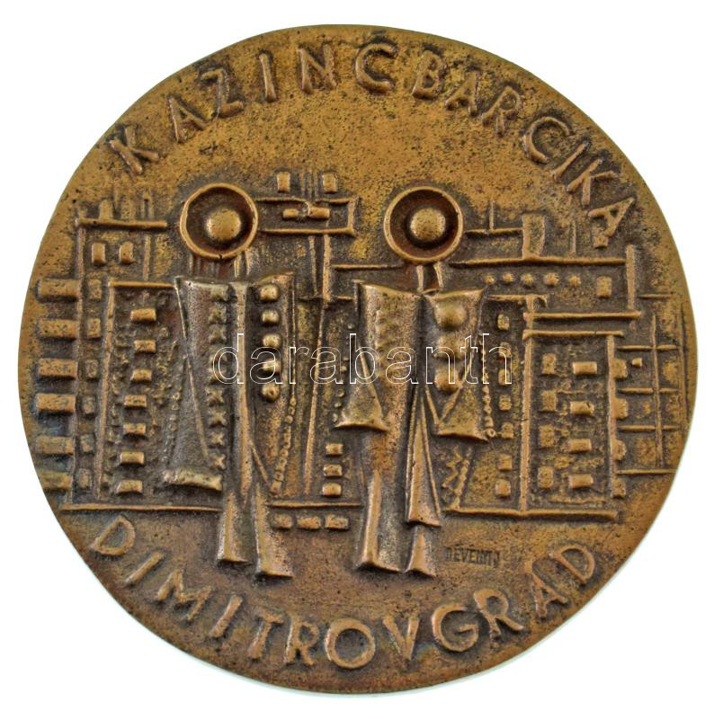 Dévényi János (1934- ) DN "Kazincbarcika - Dimitrovgrád" egyoldalas, öntött bronz plakett (91mm) T:AU,XF