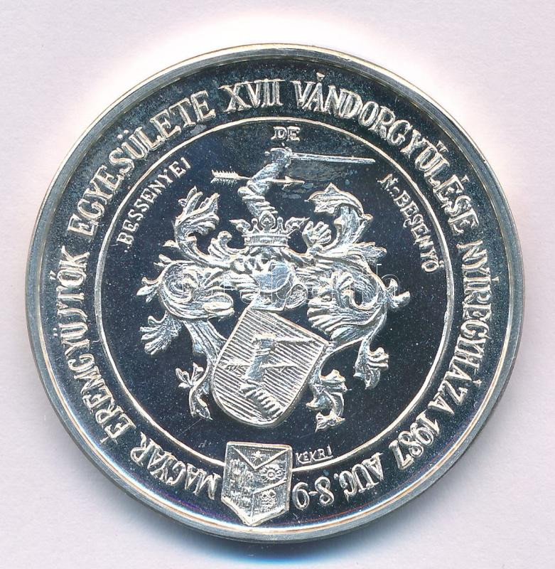 Kelemen Kristóf (1922-2001) / Sebestyén Sándor (1949-) 1987. "MÉE XVII. Vándorgyűlés Nyíregyháza / Bessenyei György" Ag emlékérem (35,66g/0.835/42,5mm) T:AU (PP)