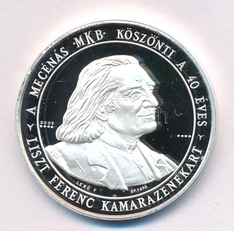 Lebó Ferenc (1960- ) 2003. "A Mecénás MKB Köszönti a 40 éves Liszt Ferenc Kamarazenekart" Ag emlékérem (31,71g/0.999/42,5mm) T:PP