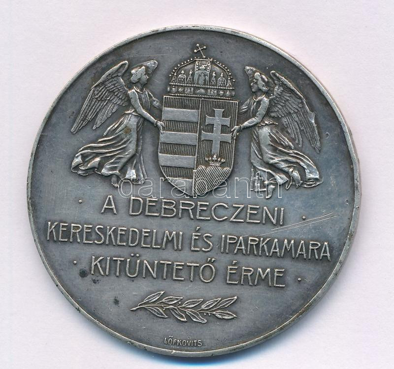 Löfkovits Arthur (1863-1935) 1911. "A Debreczeni Kereskedelmi és ... https://www.darabanth.com/en/469-Online-auction/469.0/Numismatics/Hungarian-commemorative-medals-and-plaques~2000011/Lofkovits-Arthur-1863-1935-1911-A-Debreczeni-Kereskedelmi-es-Iparkamara-kitunteto-erme-Je~II3170607