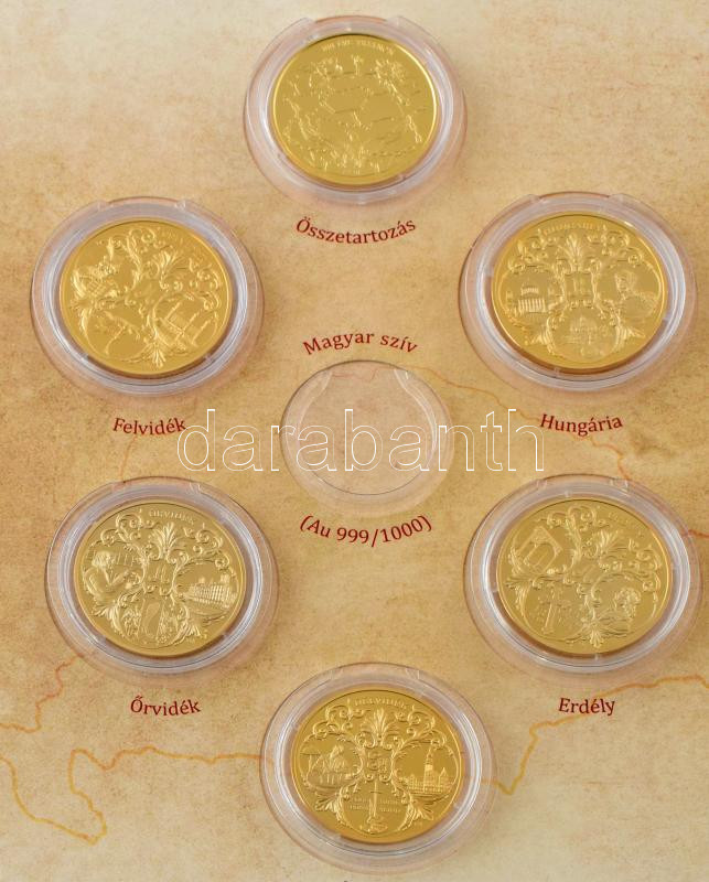 Csontos Attila DN "Határtalanul" 5xklf aranyozott Cu-Ni emlékérem (Délvidék, Őrvidék, Hungária, Erdély, Felvidék) gyűjtői mappában, tanúsítványokkal T:PP