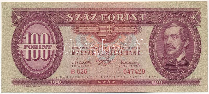 1947. 100Ft "B 026 047429" T:F szép papír Hungary 1947. 100 Forint "B 026 047429" C:F fine paper Adamo F27